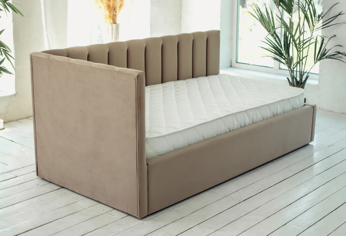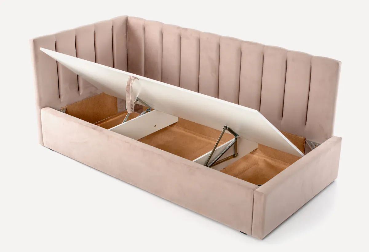 Спальное место: 90×200 см — оптимальный размер, подходящий как для детей, так и для подростков. Подъемный механизм: В комплекте идёт удобный механизм, который позволяет легко приподнимать спальное место, открывая доступ к просторному отсеку для хранения. Там можно разместить постельное бельё, одеяла, подушки или любимые игрушки, что поможет поддерживать порядок в комнате. Материал обивки: Возможность выбора ткани — Рогожка или Велюр. Оба варианта отличаются практичностью, износостойкостью и приятной текстурой. Универсальный дизайн: Кровать подойдёт как для мальчиков, так и для девочек, а широкий выбор цветов обивки позволит подобрать идеальный оттенок под любой стиль и предпочтения ребёнка.